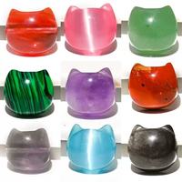 10 * 16mm天然宝石猫ヘッドチャーム可愛い癒しクリスタルシルバー黒曜石アメジスト石猫ヘッド穴付きDIYジュエリー
