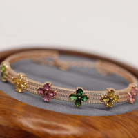 3*4mm特別天然スイカトルマリンクリスタルファセットフラワー宝石調整可能バングルブレスレット925シルバージュエリー