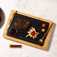 手作りウッドナチュラルブラックスレートストーンプレートスナックに最適