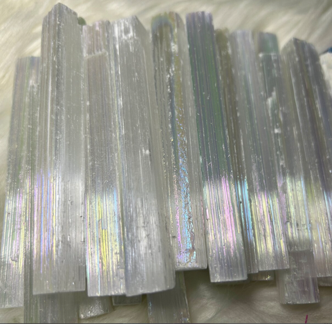 10x 2cm天然チャクラ石ビーズワイヤーラップヒーリングストーンクリスタルワンドエンジェルAura Seleniteスティックヨガ瞑想用