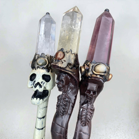 魔法の魔女の杖,40-50cm天然混合宝石クリスタル樹脂