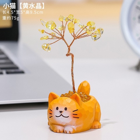 ラッキーキャットマネーツリーフォーチュン動物混合クリスタル宝石生命木装飾クリスタル工芸品室内装飾およびギフト用