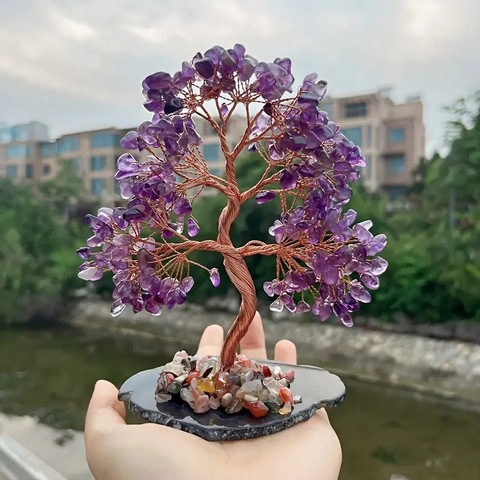 卸売11-12cm自然治癒チャクラ生命の木アメジストクリスタル砂利チップ木クリスタルストーン家庭装飾用ギフト