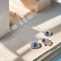 도매 인기있는 실버 골드 도금 터키어 블루 아이 펜던트 목걸이 다이아몬드 도금 사악한 눈 목걸이