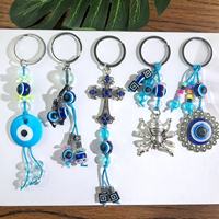 빈티지 올빼미 악마 눈 거미 열쇠 고리 블루 에나멜 중공 꽃 사악한 눈 펜던트 열쇠 고리 여성용 남성용