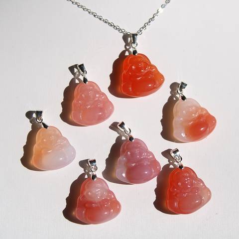 قلادة بودا صغيرة من عقيق يانيوان الطبيعي 17 من إكسسوارات الفضة الإسترليني Feng Shui Smile Buddha