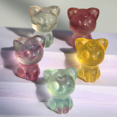 Prix de gros Naturel Arc-En Fluorite Cristal Mini Sailor Moon Luna Chat Sculpture Pour Cadeaux