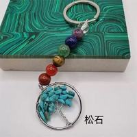 Vente en gros de porte-clés en cristal naturel arbre de vie pierre précieuse 7 chakra de guérison pierre de quartz rose breloque cadeau pour la décoration