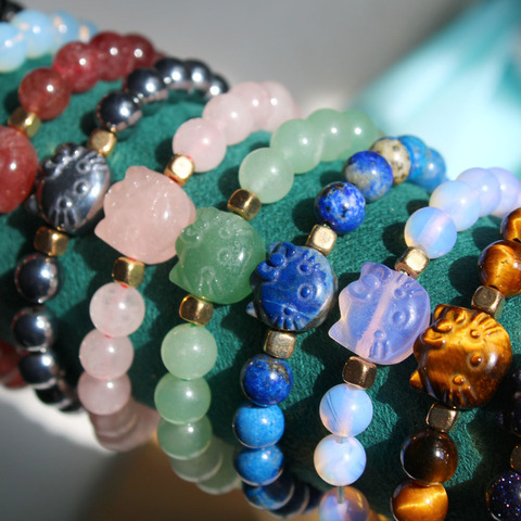 สร้อยข้อมือคริสตัลอัญมณีคิตตี้6มม. หลายแบบสร้อยข้อมือคริสตัลบำบัด