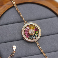 กำไลข้อมือคริสตัลพลอยทัวร์มาลีนธรรมชาติขนาด3x4มม. กำไลข้อมือเงิน925เป็นของขวัญ