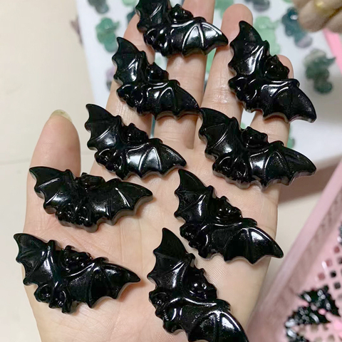 Tay Khắc 5Cm Tự Nhiên Màu Đen Obsidian Bạc Obsidian Pha Lê Fly Dơi Khắc Cho Trang Trí Nội Thất